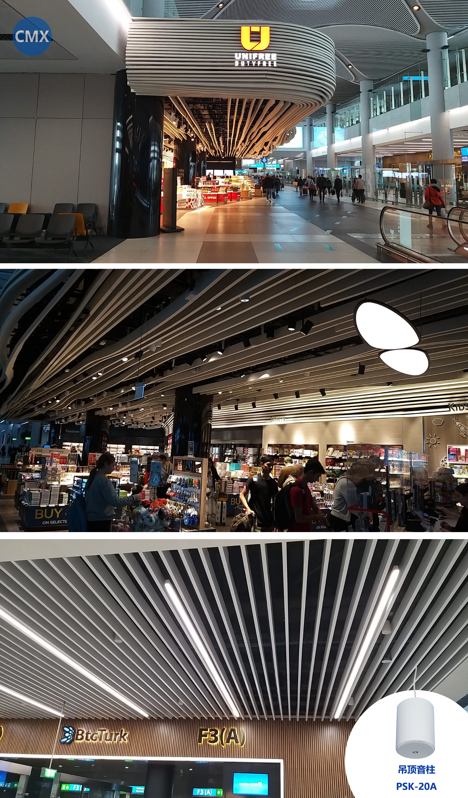 根據(jù)過(guò)閘區(qū)域與走廊,區(qū)域小、美觀等需求,現(xiàn)場(chǎng)天花板上選用了CMX的8寸天花喇叭(CSK-86MC)。