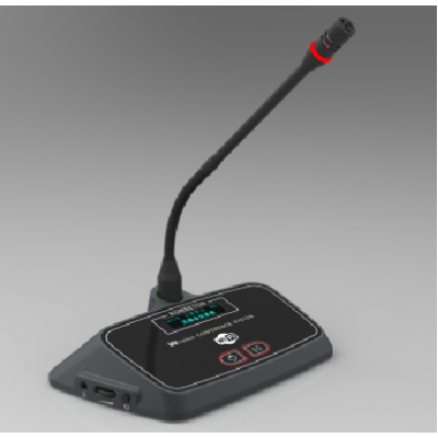 電容式心型指向性麥克風(fēng),并帶雙色指示燈圈;發(fā)言為紅色,等待發(fā)言為綠色;