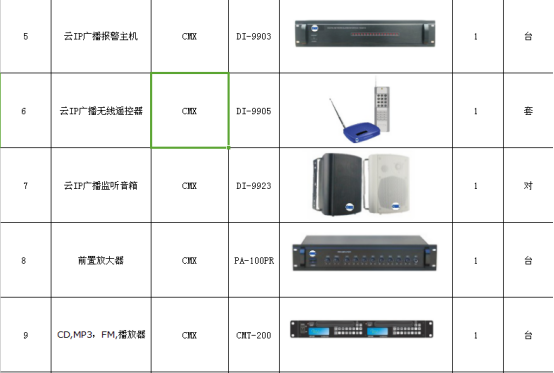 6、園區(qū)網(wǎng)絡(luò)廣播系統(tǒng)配置有多種節(jié)目音源,如CD播放器、MP3播放器、數(shù)字收音機等設(shè)備,滿足園區(qū)多樣化廣播需求。也可以利用網(wǎng)絡(luò),同時播放多套節(jié)目。