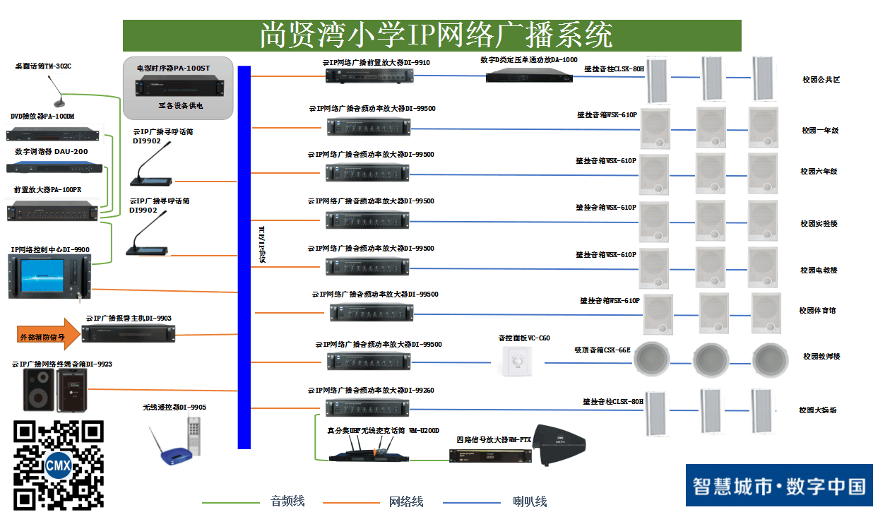 隨著國家對(duì)普教的重視,改進(jìn)教學(xué)設(shè)施完備、教育特色鮮明、辦學(xué)質(zhì)量一流的小學(xué),逐步完善的現(xiàn)代信息化管理系統(tǒng),給新時(shí)代的教學(xué)管理注入了新的活力。小學(xué)數(shù)字信息化建設(shè)的不斷革新,小學(xué)的建設(shè)發(fā)展也受到國家和地方的日益重視,為完善現(xiàn)代化的教學(xué)管理, 營造更為舒適的小學(xué)生活環(huán)境,小學(xué)需要設(shè)計(jì)一套數(shù)字化的廣播系統(tǒng),要求廣播覆蓋每一個(gè)班級(jí)每個(gè)教學(xué)點(diǎn)及公共區(qū)同步,整個(gè)小學(xué)區(qū)的的各功能區(qū)室外環(huán)境,主要滿足日常背景音樂的需求,兼顧校園廣播通知、應(yīng)急消防災(zāi)難性廣播指揮等功能。