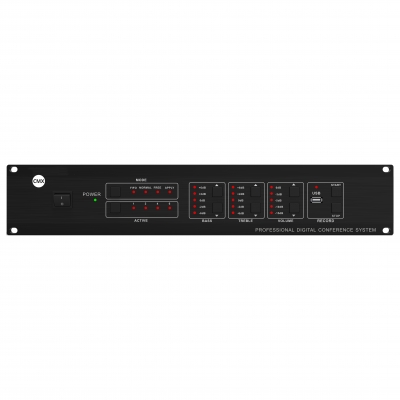 ◆ 智能帶USB錄音數(shù)字會議控制主機采用2U機箱設(shè)計,可安裝在19寸標準機柜中,是實現(xiàn)與會議單元及PC管理的重要橋梁,通過面板的導(dǎo)航鍵盤,配合軟件會議管理功能可以實現(xiàn)對所有會議功能進行集中控制。具有多種會議模式選擇(發(fā)言人數(shù)選擇、發(fā)言模式選擇),超強的擴展功能,