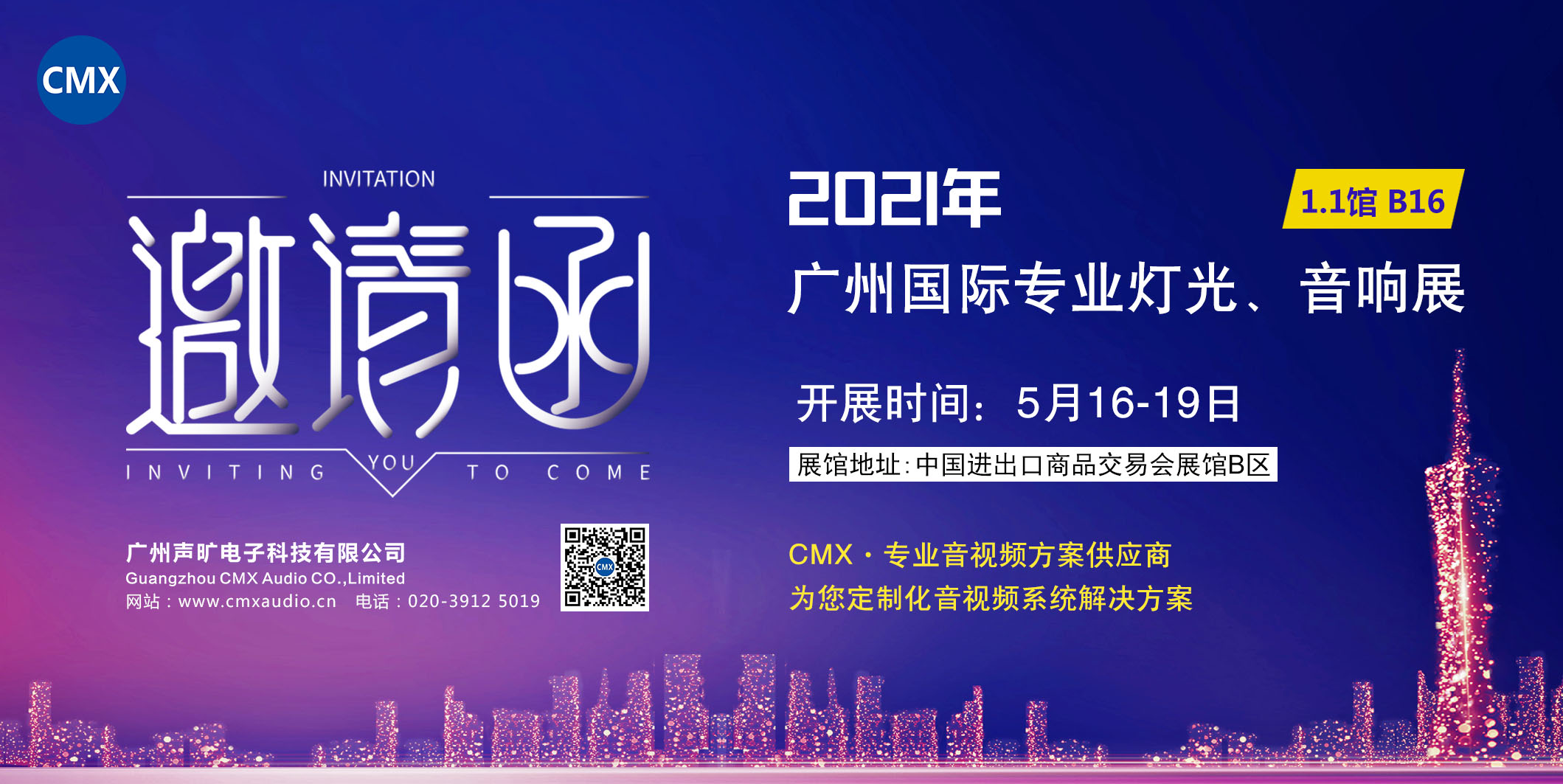 您好!“2021廣州國(guó)際專業(yè)燈光、音響展”將于2021年5月16日至19日 (周日至周三) 在中國(guó)進(jìn)出口商品交易會(huì)展館A、B區(qū)舉辦。